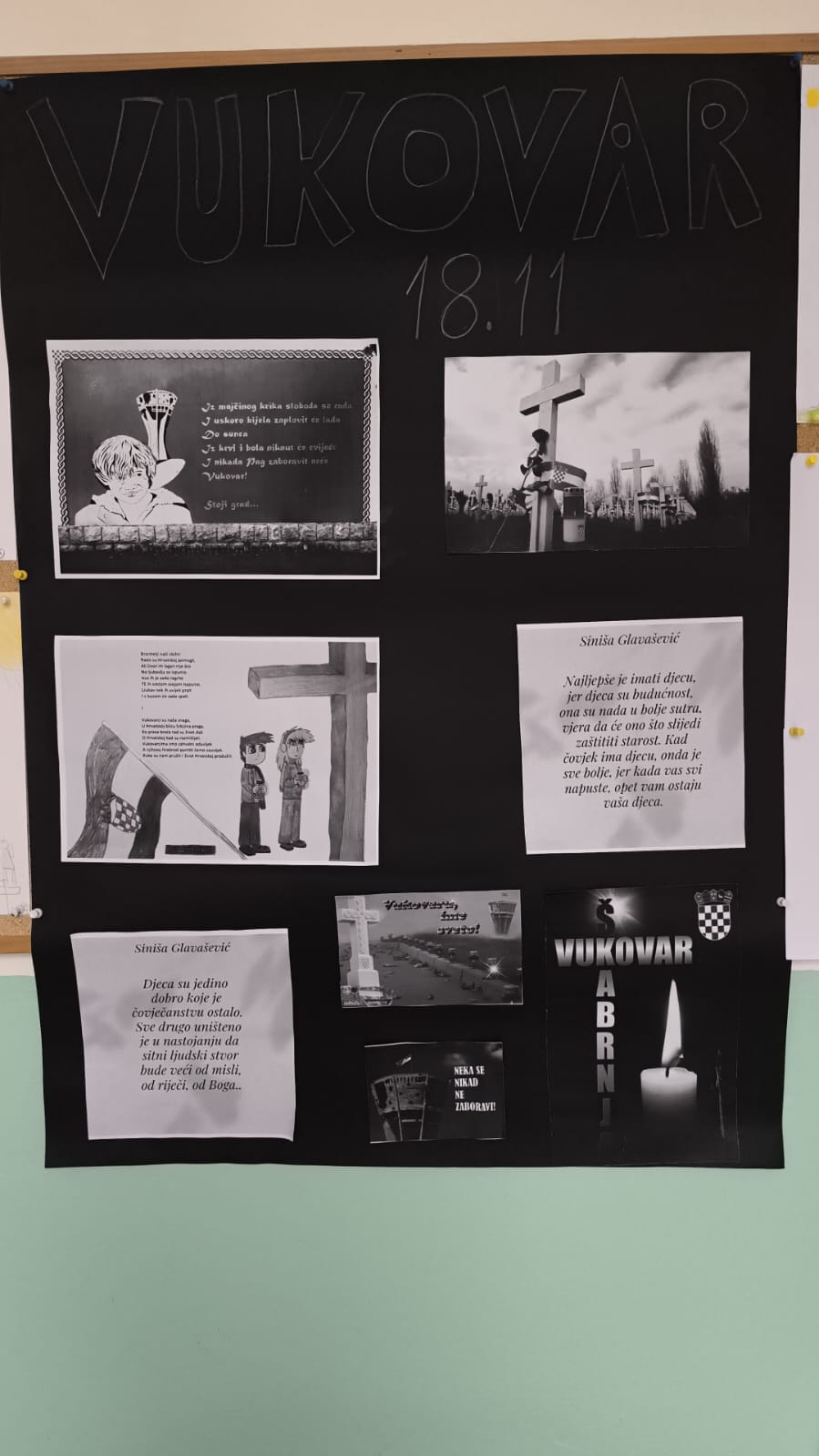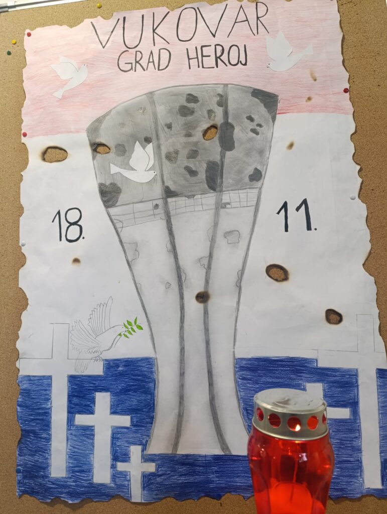 18.11. Dan sjećanja na žrtve Vukovara i Škabrnje. Kao i svake godine, naši učenici su odali počast svim žrtvama Vukovara i Škabrnje. Paljenjem svijeća, tihom molitvom i kratkim prisjećanjem na događaje iz Domovinskog rata, obilježili smo ovaj važan dan hrvatske povijesti. Ovim činom učenici izražavaju zahvalnost i poštovanje prema svim poginulim braniteljima i civilnim žrtvama.